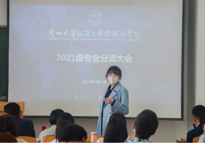 2021级政治学类本科生专业分流工作方案》,我院于4月28日下午2:30在天山堂A201召开了2021级本科生专业分流大会,学院党委副书记贾海燕,政治学系主任肖涵、副系主任米鹏举,国际政治系主任李益斌、副系主任靳晓哲,教师代表李泽和教学秘书王婉君参加了本次会议。