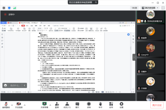 随后梁老师对文本涉及到的主要事件进行了简单梳理,同时结合文本向大家分享了几点看法:一是决策者作出的决策有时会受情绪偏好的影响;二是读书和交友很重要,都要谨慎选择;三是不能试图解决所有问题,因为个人精力是有限的,资源是有限的;四是上层要有使命感,中层要有责任感,基层要有上进心。最后梁老师对文本进行了详细分析,向大家谈及待人接物之道。