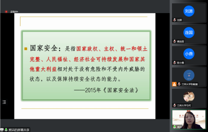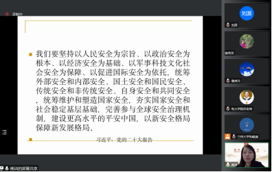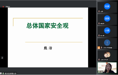 邀请,中央党校国际战略研究院全球治理与国际组织研究所副所长、副教授熊洁为我校师生做题为《总体国家安全观》的线上学术讲座。此次讲座由我院副院长陈小鼎教授主持,校内外300余名师生参加。