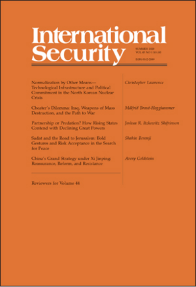 【期刊简介】《国际安全》(International Security)于1976年创立,是国际和国家安全领域的顶级同行评议学术期刊,以季刊形式发行。由哈佛大学贝尔弗科学与国际事务中心(Belfer Center for Science and International Affairs at Harvard University)编辑,麻省理工学院出版社(MIT Press)组织出版。根据2018年期刊引用报告,其影响因子为4.500,位列“国际关系”类别期刊第二位。