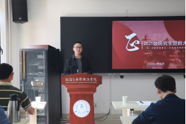 紧接着是老生和新生代表发言。2021级博士研究生赵磊同学作为老生代表发言。赵磊同学以烹饪作比研究生阶段的学术生涯,以对食材的物尽其用告诉新生要充分利用当下,以练就高超厨艺告诉新生要夯实基础,练就扎实本领,用心做好每一件事,并在最后结合自身经验,启发各位师弟师妹要做好面对研究生生活中各种挫折和挑战的充分心理准备和预案。2021级硕士研究生谢诗瑶随后发言,谢同学以诚挚的言语表达了对学校和学院的感激之情,对从东南沿海跨越大半个中国与各位同学相聚兰大的兴奋,以及深感作为一名兰大人的光荣与自豪。