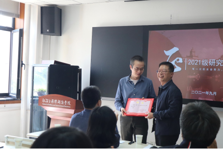 大会在参会全体师生合唱的校歌中开幕。校歌唱毕后,姚书记代表学院宣读了院党委决定的《关于聘任2021级研究生班主任的通知》,聘任陈一一副教授担任2021级研究生班主任。陈一一副教授遂接过聘书并表达感谢。