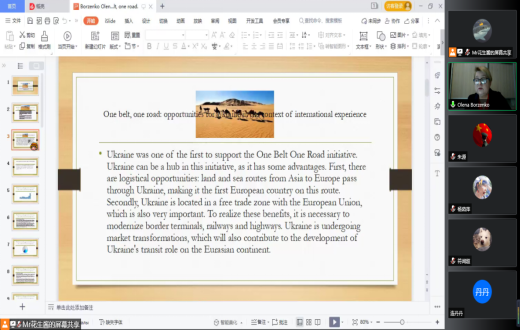 邀请,乌克兰科学院经济与预测研究所耶列娜·波尔坚科研究员为我院师生做了题为“一带一路:基于国际经验的乌克兰的机会分析”的线上学术讲座。此次讲座由我院张旖旎老师主持,院内外230余名师生参加。