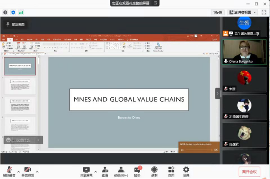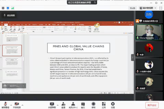 邀请,乌克兰科学院经济与预测研究所耶列娜·波尔坚科研究员为我院师生做了题为“跨国公司与全球价值链”的线上学术讲座。此次讲座由我院张旖旎老师主持,院内外200余名师生参加。