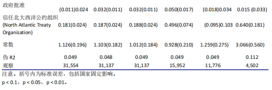 作者认为先前研究的证据表明,年龄、婚姻状况和性别等社会人口变量与支持恐怖主义之间存在密切关联。具体而言,女性、老年人、已婚、有孩子并有工作的群体对恐怖主义的支持程度更低。此外,教育、收入也是相关因素,因此在模型中包括了上述所有变量。此外,作者还对被调查者父母来源进行了变量控制:当父母都不是出生在这个国家时,变量取值1,否则取值0。作者还纳入了两个与解释支持恐怖主义特别相关的态度变量:对政府认可的标准(10分制)和对北约的信任度(10分制),纳入这两个变量的理由是:其一,既有研究指出,对恐怖主义的认可和辩护与反美主义以及认为西方大国的外交政策对伊斯兰教构成威胁的看法密切相关;其二,在过去的几十年里,北约向来是美国用来推进其中东外交政策目标的主要依靠,因此,作者预计,鉴于大多数圣战分子反对美国和西方的干涉主义,对北约的低信任度可能会让普通民众觉得对北约成员国的袭击是合理的。