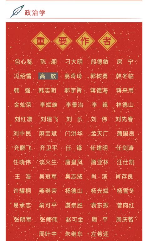 2020年3月31日,由中国人民大学人文社会科学学术成果评价研究中心和中国人民大学书报资料中心联合研制的《复印报刊资料重要转载来源作者(2019年版)》正式发布。我院曾向红教授入选政治学学科重要转载来源作者名单。