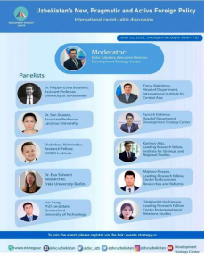 孙秀文副教授应邀参加“乌兹别克斯坦新型、务实和积极的对外政策”线上学术研讨会。本次国际会议由乌兹别克斯坦发展战略中心发起,并由国际经济和政治研究中心、总统战略与区域研究院、国际关系信息分析中心、中亚地区国际研究院等多家乌兹别克斯坦科研院所协办。来自乌兹别克斯坦、中国、英国、德国、澳大利亚的10余名代表在会议上围绕乌兹别克斯坦外交发表了观点并展开了讨论。