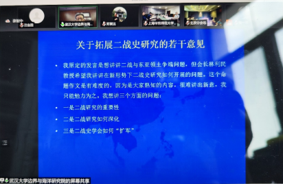 汪金国教授主持会议开幕式,并在会上做了题为“俄德两国关于俄藏德国文献数字化项目”综述的学术发言。来自武汉大学、中国社会科学院、国防大学、国际关系学院、华东师范大学、首都师范大学等数十家高校及科研机构的百余位专家学者齐聚云端,围绕第二次世界大战史展开了热烈而富有成效的探讨。