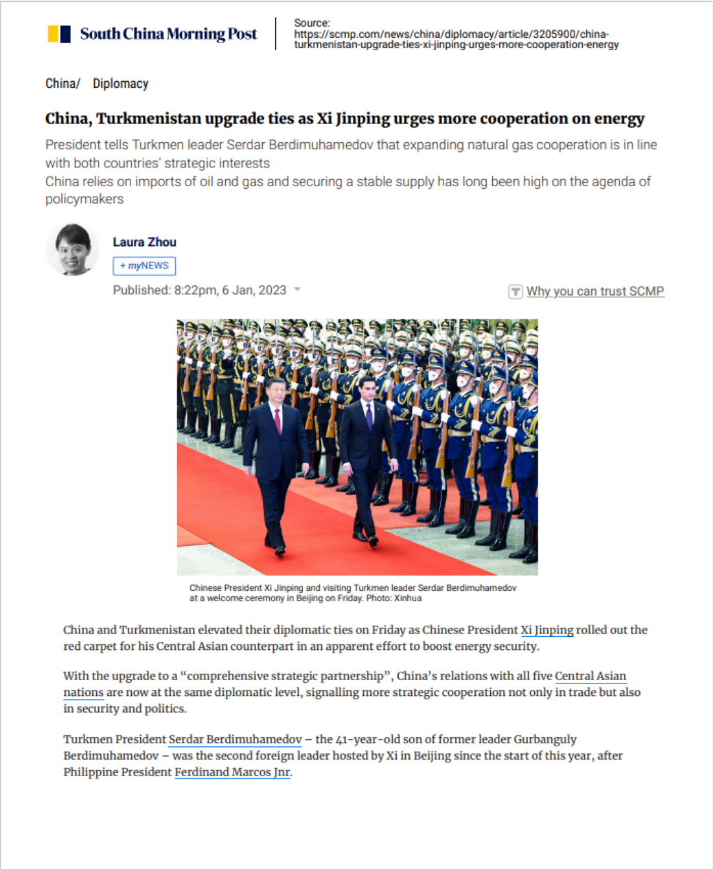 土库曼斯坦研究中心主任王四海教授就土库曼斯坦总统谢尔达尔·别尔德穆哈梅多夫访华接受《华南早报》采访,相关报道如下: