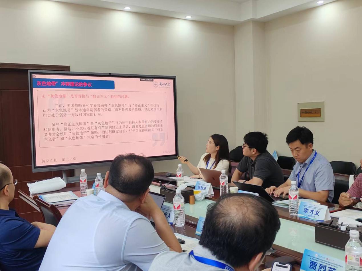 7月20日下午第一节,曾向红教授在分论坛四(上半场)作了题为“大国竞争下中亚‘C5+1’合作机制的扩散”的发言,韦进深副教授在分论坛三(下半场)作了题为“新时代中国国际秩序观的平等特质及其构建路径”的发言,王二峰博士在分论坛二(上半场)作了题为“‘灰色地带’冲突理论刍议”的发言。期间,他们均与其他院校的参会人员就现有的国际政治热点问题和学科建设等问题做了深入的交流。