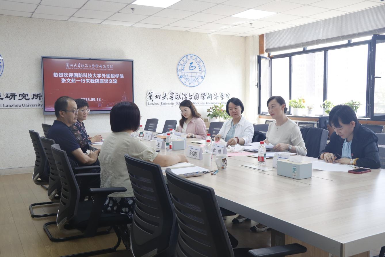 9月13日,国防科技大学外国语学院张文茹一行来我院调研座谈。院长朱永彪、外国语学院副院长张宏莉及双方专业教师代表参加座谈。座谈会由学院副院长高婉妮主持。