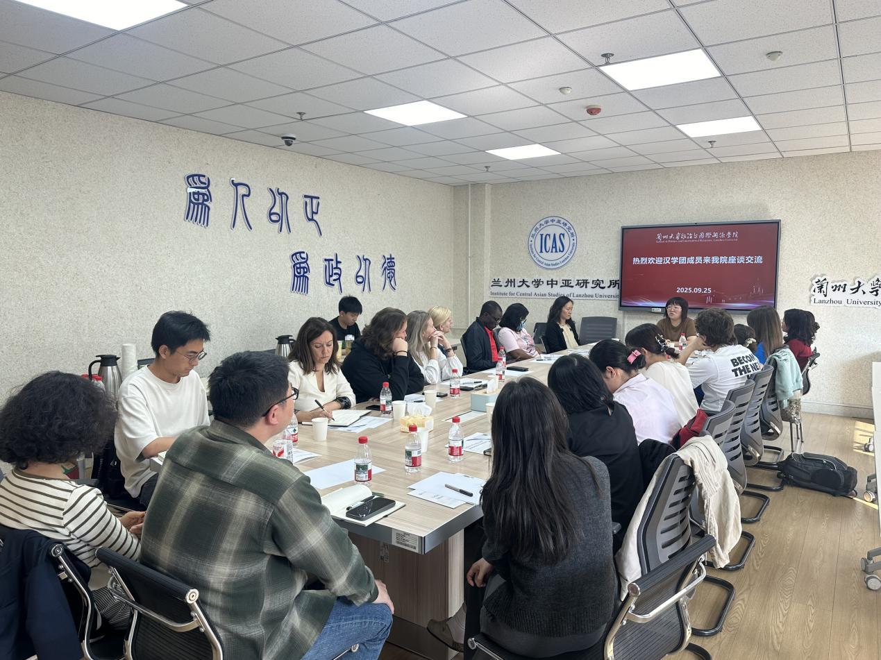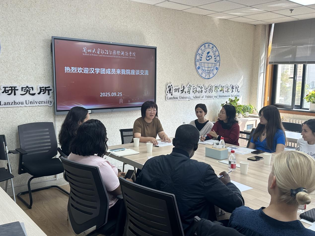 9月25日下午,青年汉学家研修代表团一行来我院座谈交流。据悉,该团是由中外文化和旅游中心、甘肃省文旅厅、甘肃省文物局以及甘肃简牍博物馆共同举办的外国青年学者访华研修活动,共包含来自阿根廷、日本、希腊、西班牙等23个国家的25位汉学研究者及文化爱好者。其此次到访旨在与学院师生开展深入的学术交流与文化探讨。学院教师代表李亮、毛建平、李泽等人及我院部分研究生、留学生代表参加座谈。座谈会由学院副院长高婉妮主持。
