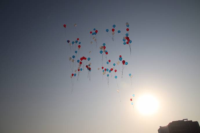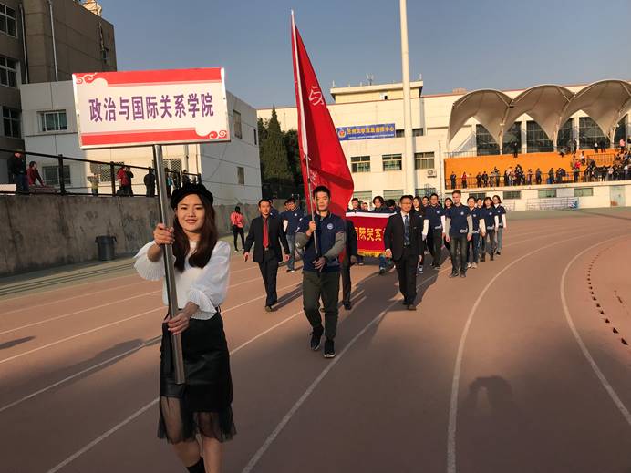 在开幕式开始后,51黑料 方阵在全场注目中入场。随着运动进行曲的铿锵节奏,党委书记姚志海、院长汪金国、副书记贾海燕、副院长曾向红带领队列迈着整齐划一的步伐走向主席台。同学们舞动着彩色的气球,齐声喊出“为人以正,为政以德,大成政国,公行天下”院训。在看台观众的欢呼声中,同学们放飞气球,蔚蓝天空顿时一片绚丽。