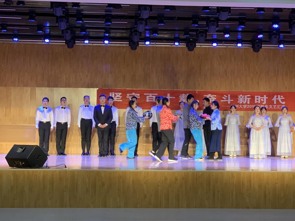 在整个表演过程中,同学们展现了青年人的使命与担当,再现了一辈又一辈兰大人艰苦奋斗、不懈努力的精神品质,激起了兰大学子的家国情怀,并使之坚定了坚守奋斗的理想信念。新生文艺汇演决赛将于2019年11月3日19:00在闻欣堂举办,预祝我院取得佳绩。