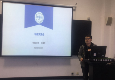 第三位进行经验分享的是哲学社会学院硕士研究生李国权同学。李国权同学主要从如何确立研究方向、如何与导师建立联系、如何取得学业成功等方面来进行经验分享。李国权同学认为研究生阶段取得成功的关键是勤于思考。另外,研究生应当积极参与导师的项目调研以及学院内外组织的各种学术创新实践活动。
