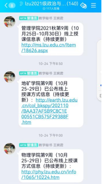 自10月21日接到学校教务处通知后,我院迅速组织并开展相关工作,为转入线上教学模式打好前哨战。本学期,我院共开设24门本科生课程以及4门研究生课程,参与教师20余名。接到学校通知后,学院及时与各任课教师沟通,创建线上课程,收集相关信息,做好开展线上教学需要的一系列准备。同时,学院积极组织各位老师参加学校开办的线上教学培训课程,通过网络直播线上答疑等活动,帮助老师们迅速掌握开展线上课堂所需要的关键技巧,确保线上教学工作能够顺利开展。在开展线上教学的前期准备工作中,老师们采取多平台多形式的教学方式,认真备课,调试上课设备,积极克服各种困难,争取为学生提供良好的线上课堂环境。此外,学院群内会实时转发各学院线上课程通知,确保同学们及时了解课程信息并做好课前准备。