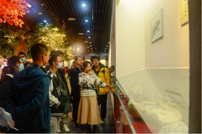 “皋兰之阴兮白塔之阳,黄流浩荡兮撼我墙。”印在校史馆入口处的《兰大昆仑堂碑记》(节选)打开了兰大百年校史的大门。在讲解员的指引下,同学们迈入百十兰大的历史。从清末新政时期初建的甘肃公立法政学堂,到如今耸立西北教育之巅的巍巍兰大,同学们领略了兰大的百年风采;从人才培养、科学研究,到社会服务、文化交流,同学们认识到兰大的教育意义。百年风雨兼程,伟大党建精神。同学们在了解校史的同时对党建精神也产生了更深刻的认识。在观看校史短片之后,同学们转入第二个展厅——黄河古象展厅。巨大的黄河古象化石骨架模型复原了剑齿象昂扬的姿态,流露出百万年前黄河上古文明的厚重气息。随后是生物与环境展厅。在这里,伴随讲解员详细的解说,同学们得以一睹西北丰富多彩的地形地貌和生物资源,生动逼真的动植物和环境模型也让同学们连连惊叹。其后,同学们参观了历史文物展厅。这些陈列着的具有西北特色的历史文物展现出西北雄厚的文化底蕴,同学们从中细细品味了先民高超的工艺技巧与文化生活。最后同学们来到了古生物化石展厅,该厅复原了上古大型生态环境,百万年前的古生物栩栩如生,在广袤的土地上演绎生物的进化,向同学们展现了远古动物的风采与厚重的自然更替。