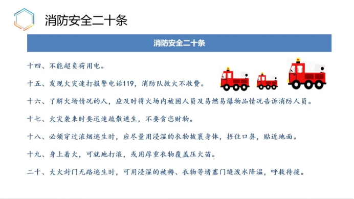 在“消防安全”方面,和我们息息相关的还是宿舍消防。高校失火对学生生命及财产安全造成了极大的损失,所以李伟向同学们详细介绍宿舍失火自逃救生方法、拨打火警电话“119”的注意事项以及消防安全二十条,使同学们在火灾来临时能够最大程度保护自己。