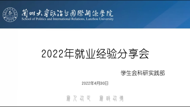 4月30日19:00,我院举行2022年线上就业经验分享会,此次分享会邀请到16级国际政治专业的苏瑞洁和18级国际政治专业的颜玥,为同学们进行就业相关方面的经验分享。
