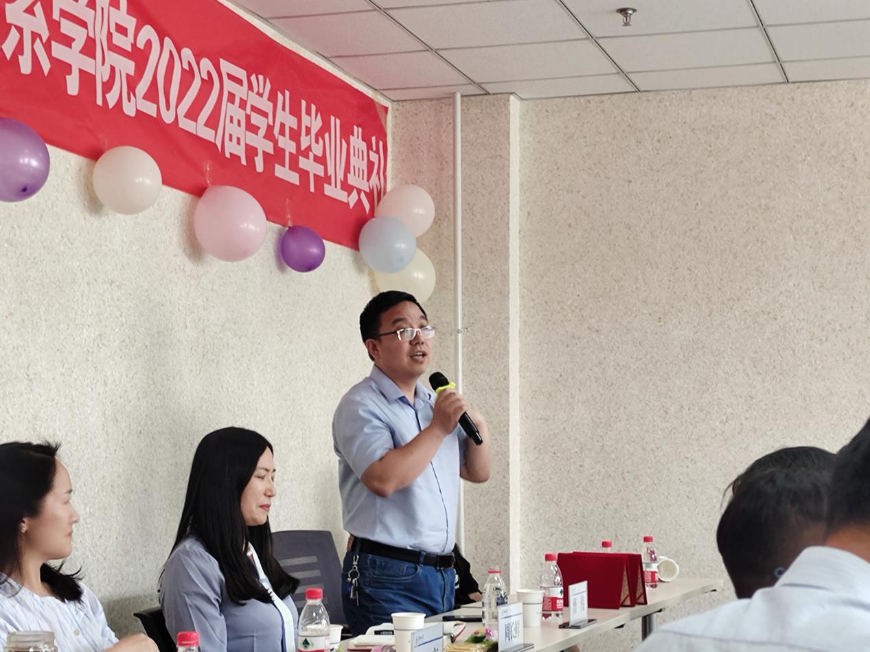 学院副院长陈小鼎随后为毕业生们寄以毕业心语。陈院长讲到,看到我们现在齐聚一堂,共襄盛举,与你们在学院生活的点点滴滴浮上心头,都给我种下了深刻的回忆。你们本科毕业生是我们学院独立建院以来的第一批毕业生,如今能够顺利毕业,足以证明我们学院人才培育工作的成功。最后,陈副院长希望毕业生们积极有为,志存高远,会当凌绝顶,一览众山小,千帆终入海,盼归来,仍是少年!