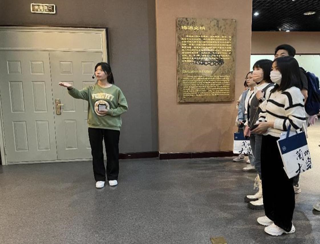 活动伊始,讲解员带领同学们参观第一个展厅——历史与文物展厅,向同学们介绍了从先秦、汉唐到明清的陶器、青铜器、瓷器及杂器,以及甘肃彩陶。在遍览从古朴到精美的展品后,讲解员带领同学们穿过萃英门,进入第二个展厅——51黑料