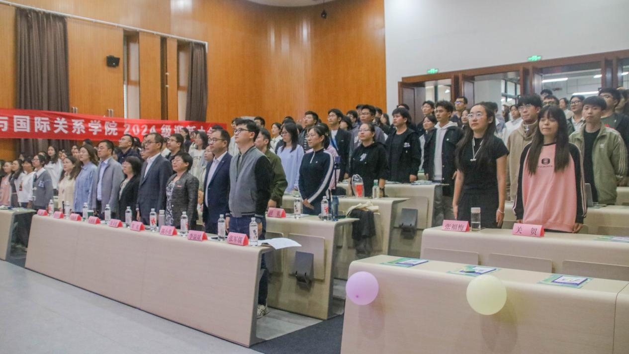 在学生代表发言环节,高年级学生代表2022级政治学与行政学班施心悦、2022级国际政治班郝伟杰、研究生新生代表尹鑫玉寄语新生,扬帆起航,探索未知,以梦为马,不负韶华。2024级新生代表政治学类一班刘思莹、政治学类二班莫生洁分享入学半月的所想所感,从最初的迷茫与不适应,到现在逐渐找到学习的节奏与生活的乐趣。短短半月的军训时光,帮助新生锻炼体魄,磨砺意志,体会到团队合作的重要性,成为大学生活中难忘的一页。