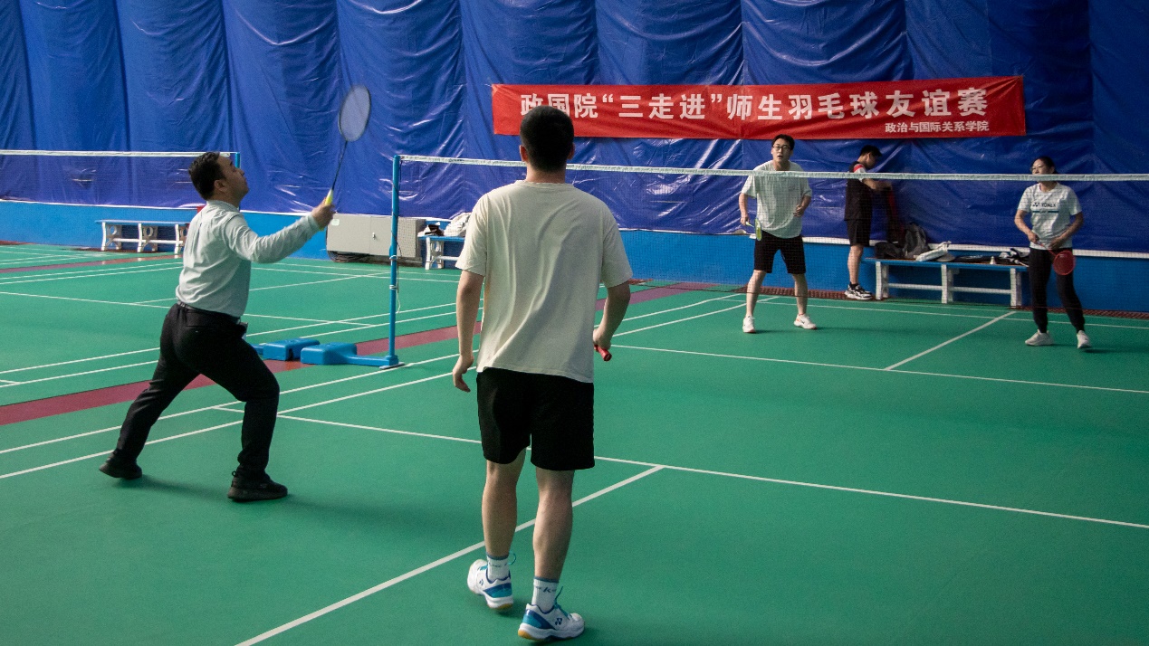 于5月9日下午15:00在榆中校区穹顶羽毛球馆举办“三走进”师生联谊羽毛球比赛。我院党委副书记张军儒老师、本科生辅导员田歌老师及部分老师参加本次活动,与我院部分本科生、研究生切磋较量,部分学生到场观赛。