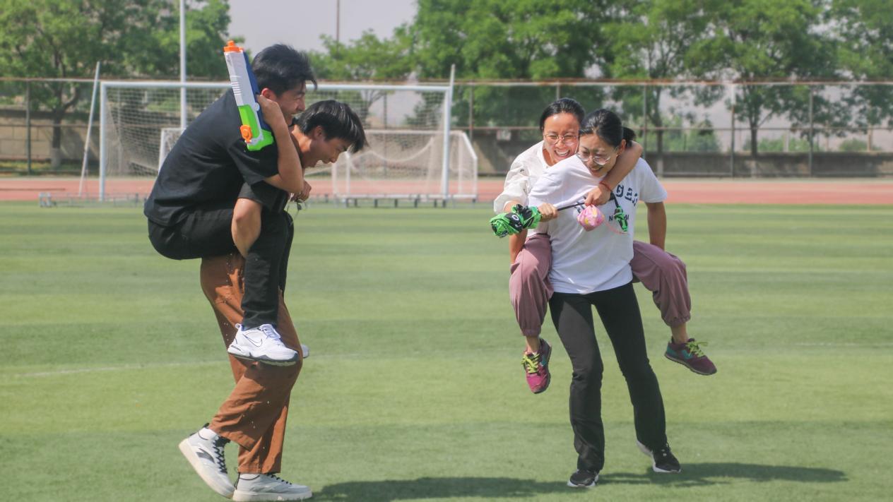 足球、铁饼,难掩映日情谊;骑马打仗、往返插旗,通力合作,好似浑然一体。谁说夏季“打仗”不清凉?水枪送来对手的关怀。谁言插旗没有劲?速度才是力度后的真谛。如果觉得手脚不够默契,不妨乘此机会和亲爱的老师同学们“借一借”,还有两人三足、六人七足帮你打开走路方式“新世界”的大门。