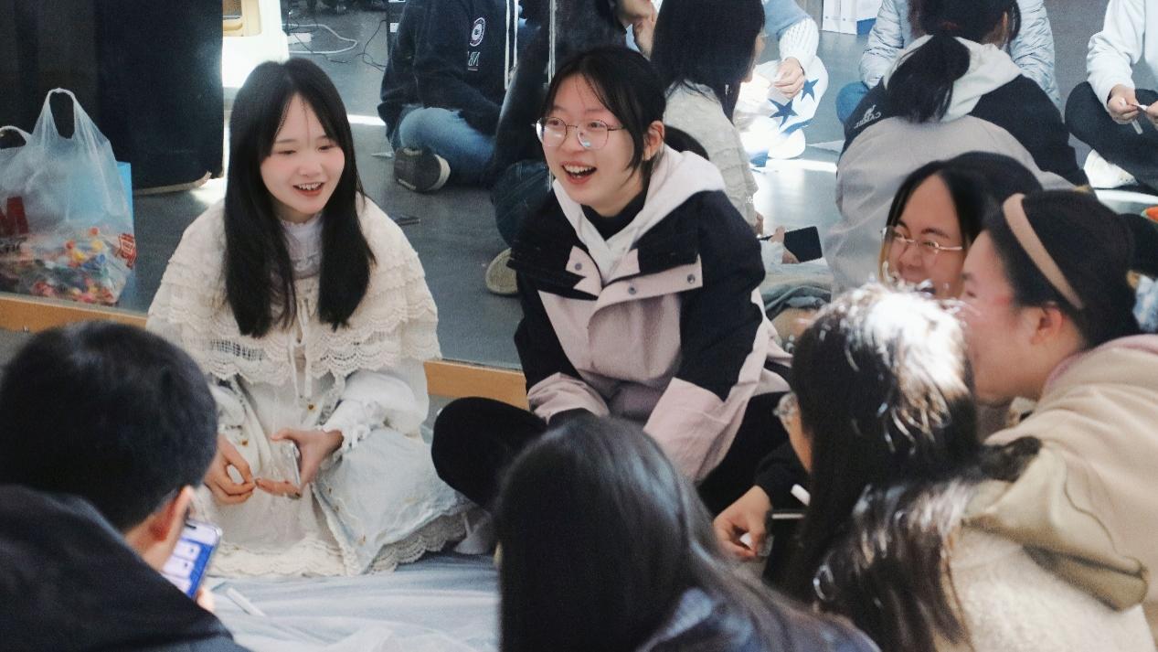 组队成功后,各小组围环坐在一起展开"压力解码"环节。每个人都在卡片上真诚书写着近期的困扰,写满字的减压卡片在成员间静静流转。当这些承载着真实情感的卡片像雪片般飞向圆心,又由不同的同学读出来后,同学们发现彼此的烦恼和焦虑大都相似,不禁相视一笑,原先内心的不安和局促也消减许多。读完这些卡片后,尹娜老师引导同学们抛开成见,就卡片上的内容展开讨论。通过这种巧妙的方式,原本羞于启齿的烦恼变成了集体智慧的疗愈素材。