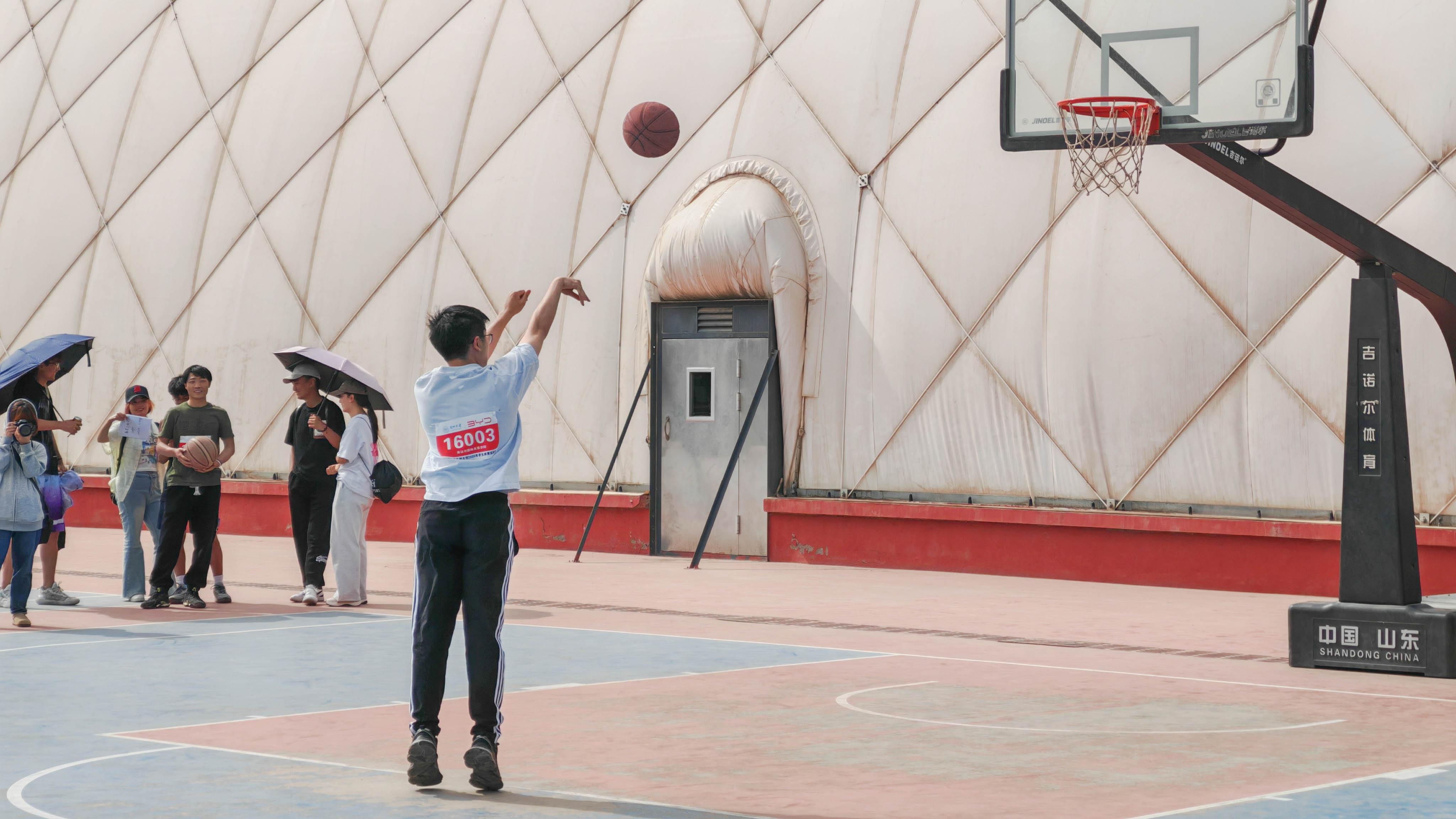 篮球在指尖翻转,选手们屈膝凝神,目光锁定篮筐。起跳瞬间,手臂舒展,手腕轻抖,划出优美抛物线。篮球划破空气,空心入网。