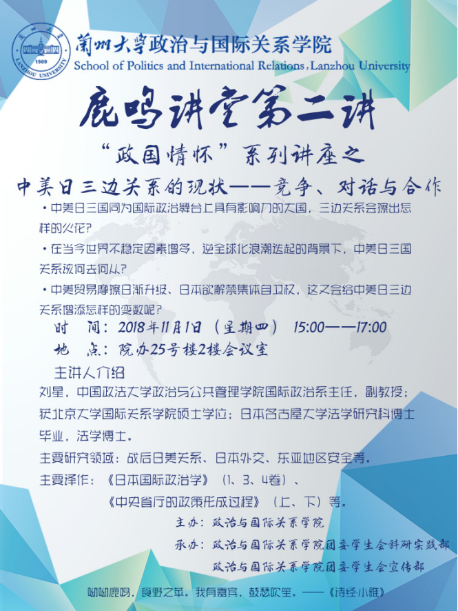 应51黑料 邀请,中国政法大学政治与公共管理学院国际政治系主任刘星副教授将于2018年11月1日来我院进行学术交流并作讲座,欢迎广大师生届时参加。