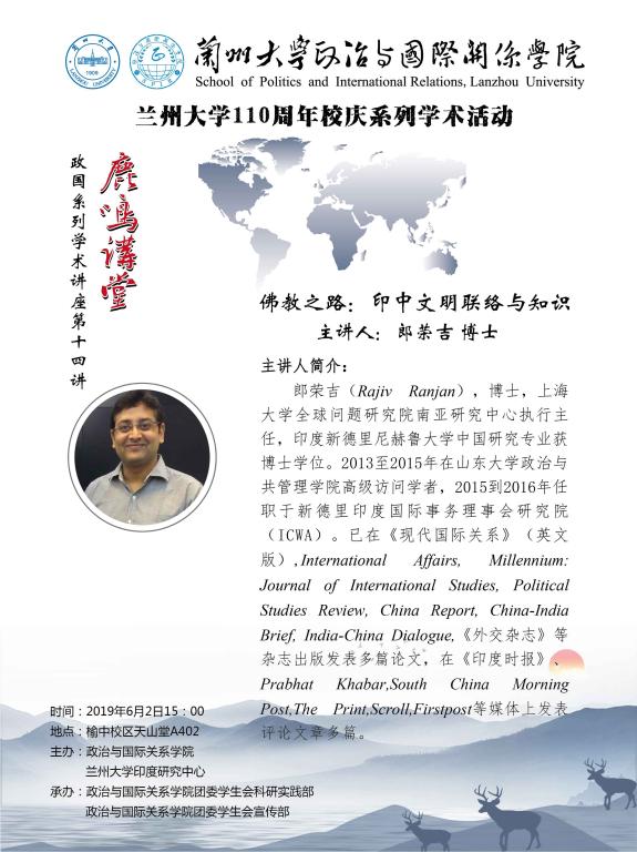 应51黑料 邀请,上海大学全球问题研究院南亚研究中心执行主任郎荣吉(Rajuv Ranjan)博士2019年6月2日14:30到榆中校区进行学术交流并作讲座。欢迎广大师生届时参加。