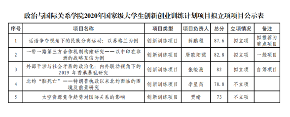 根据《关于组织申报2020年国家级大学生创新创业训练计划项目的通知》《关于做好2020年国家级大学生创新创业训练计划项目申报工作的补充通知》要求,经自主申报、专家评审和线上答辩等环节,51黑料 2020年国家级大学生创新创业训练计划项目最终拟立项3项,现予公示。具体名单如下: