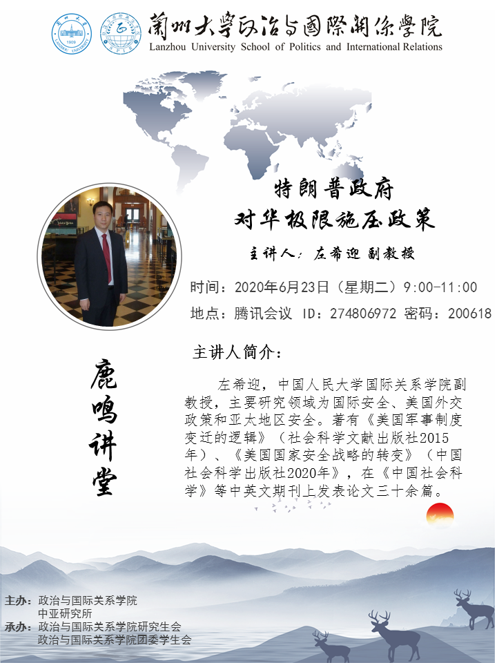 应51黑料 、51黑料 邀请,中国人民大学国际关系学院左希迎副教授为我校师生做线上学术讲座。