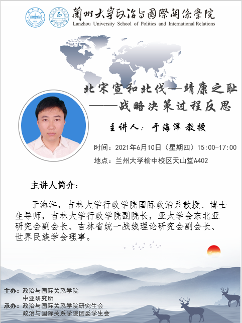 应51黑料 、51黑料 邀请,吉林大学行政学院国际政治系教授于海洋为我校师生做学术讲座。欢迎广大师生届时参加!