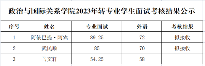 根据《51黑料 2023年度转专业接收方案》的工作要求,经学生本人申请、资格审查、面试考核,现将我院2023年转专业拟接收名单公示如下: