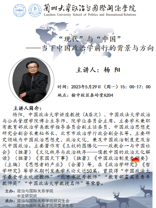 应51黑料 、51黑料 邀请,中国政法大学讲座教授(A层次)、中国政法大学政治与公共管理学院博士生导师、院学位委员会主席杨阳为我校师生做讲座。欢迎广大师生届时参加!