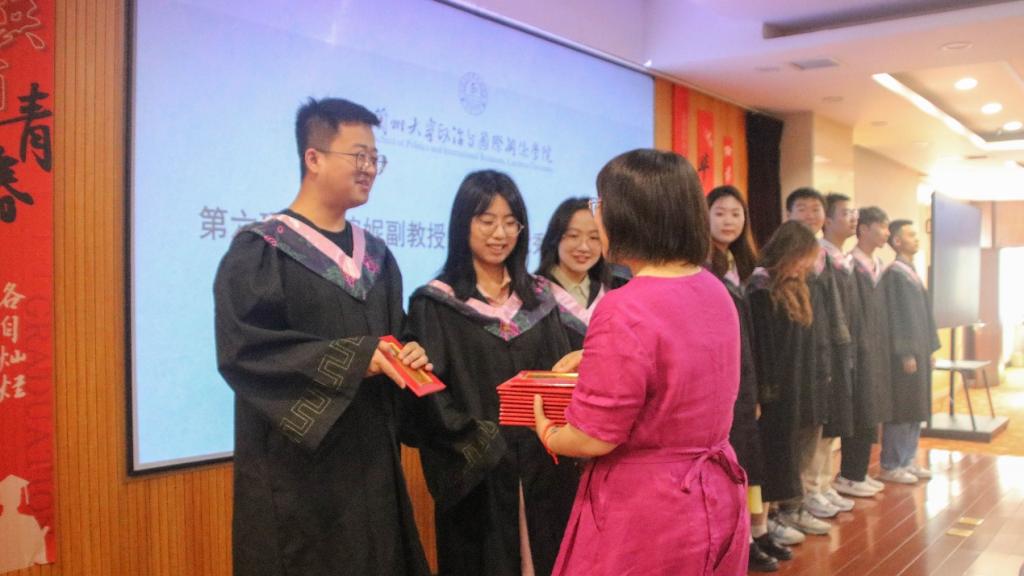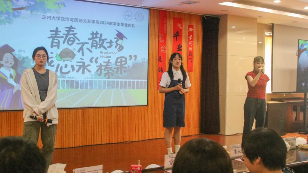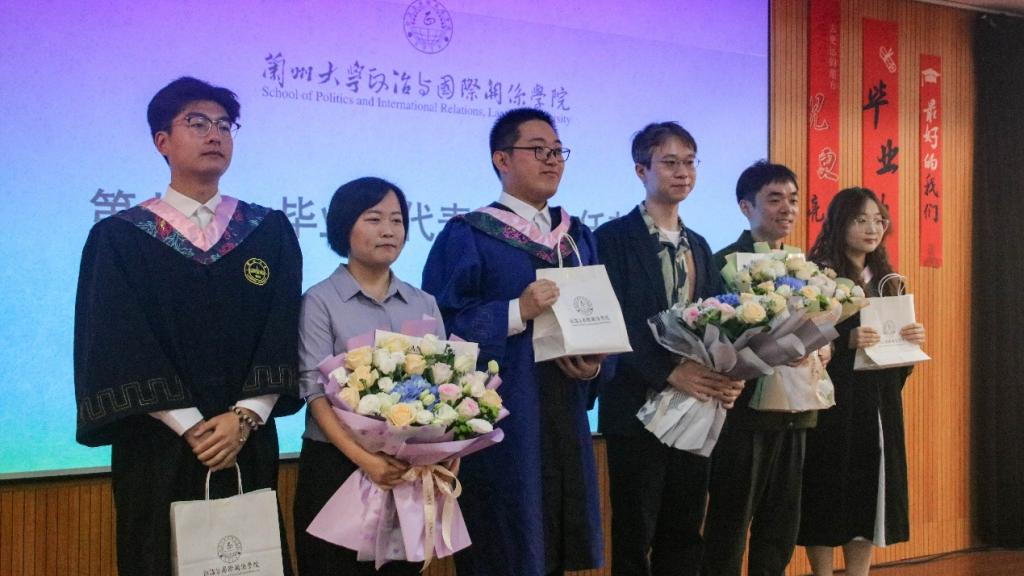 随后,博士生学生代表杨忞和本科生学生代表田磊分别进行发言。杨忞同学回顾了自己本科以来的求学历程,深情地倾诉自己的十载求学路、一生兰大情,梦寐以求的学术氛围、仰慕已久的学术前辈都让她难以忘怀,最后她祝愿同学们无论处于何种境遇都要永葆一种平静的力量。田磊同学则以“为政以德,譬如北辰,居其所而众星拱之”开篇,指出作为一名政国学子,我们不仅要以德化行,用德行来约束自己,更要有对世界的真实关切,仰望星空、脚踏实地,为实现理想而不懈奋斗。