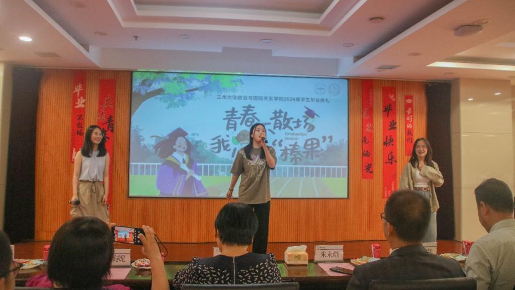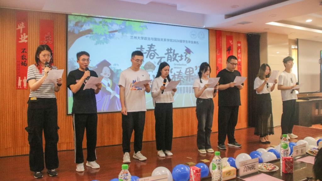 毕业典礼于萃英大酒店801会议室顺利举行,出席本次毕业典礼的有学院党委书记常虹、院长朱永彪、副院长高婉妮、院长助理曹伟,2024届毕业生班主任肖涵、孙秀文、陈一一、宁彧,任课教师代表李益斌、王术森、李亮、张维维,管理干部雷环瑞、张旖旎、田歌、孙博以及2024届全体毕业生。本次毕业典礼由学院党委副书记张军儒、2023级政治学类二班郭俊辰同学主持。