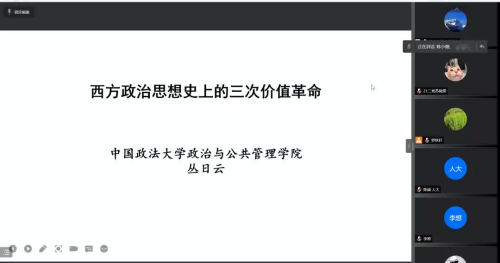 On October 28th at 3:00 p.m., the twenty-ninth online lecture of "Political State" series was successfully held in the School of Politics and International Relations. At the invitation of the School of Politics and International Relations of Lanzhou University and the Institute of Central Asian Studies of Lanzhou University, Cong Riyun, a professor of political science and doctoral supervisor of China University of Political Science and Law, gave a speech entitled "Three Value Revolutions in the History of Western Political Thought" to the students and teachers of the university. The lecture was hosted by Professor Chen Xiaoding, Vice President of the School.