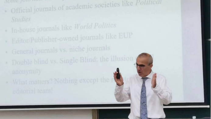 2023年9月18日早上9:00,应51黑料 国际与合作交流处、51黑料 、51黑料 邀请,德国康斯坦茨大学国际政治讲席教授Gerlad Heinrich Schneider为我校师生作题为“Academic Writing: Seven Sins of Doing Research(学术写作中的七宗罪)”的学术讲座,本次讲座由学院副教授陈一一老师主持并作辅助讲授,学院全体本科生及部分研究生参加。