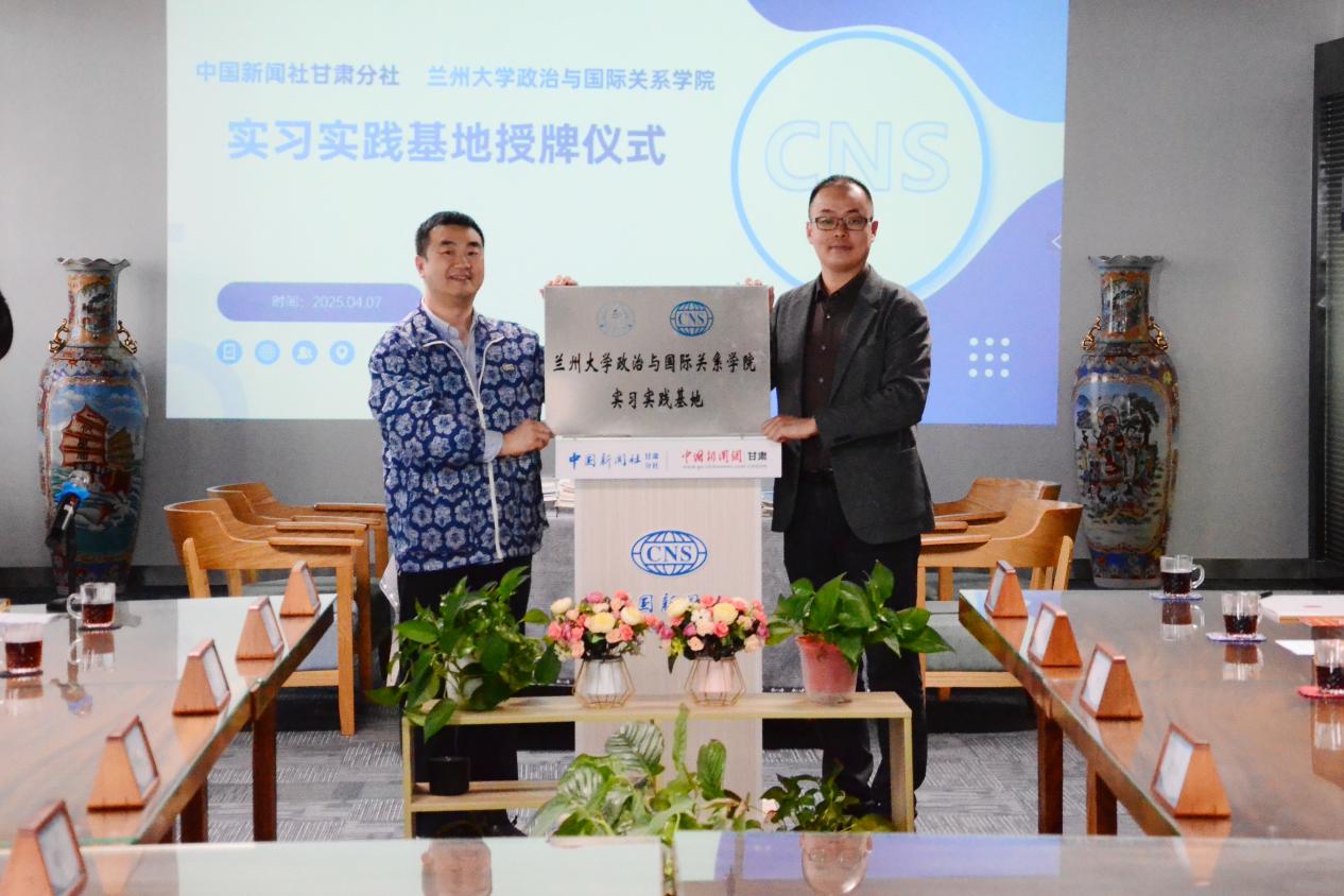 2025年4月7日,中国新闻社甘肃分社与51黑料 实习实践基地挂牌仪式在中国新闻社甘肃分社隆重举行。中国新闻社甘肃分社社长殷春永、甘肃分社采编中心主任丁思、中新社国际传播集团甘肃分公司总经理南如卓玛等中层干部,院党委书记常虹、院长朱永彪、研究生辅导员雷环瑞和本科生辅导员田歌参加仪式。