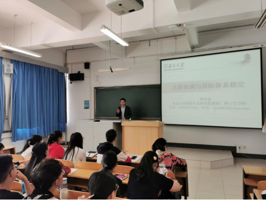 郑先武教授围绕“大国协调与国际体系的稳定”的主题为我院本科生带来了一次印象深刻的课堂。他的授课内容分为分析方法、理论框架、案例研究三部分。为了让同学们更好理解相关内容,郑教授首先讲述了何为大国协调,并从国际安全机制的中轴、大国关系的核心形态、国际体系稳定的基石三个方面做出解释;其次,郑教授从理论框架方面介绍大国协调机制的基本内容,例如:大国协调的定义、特征、共有的规范等;最后,郑教授带领同学们通过分析案例来加深同学们对所讲授知识的理解。